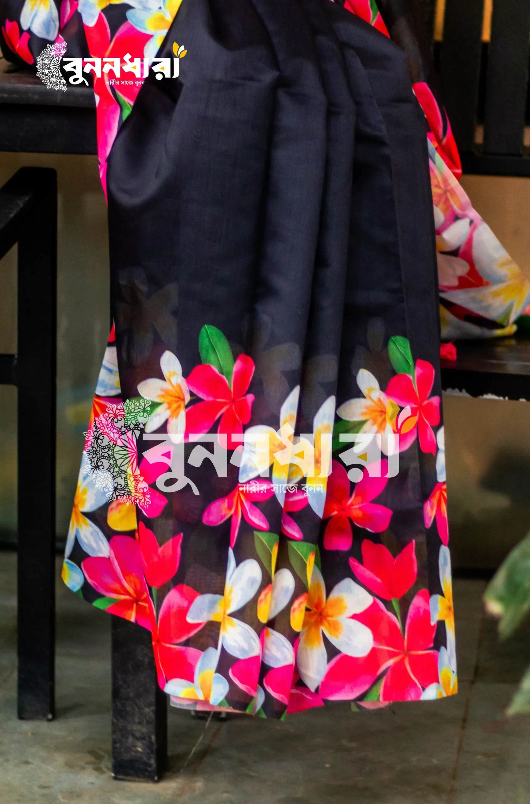 কালো বেসে রঙিন ফুলের নকশা — আভিজাত্য আর সৌন্দর্যের এক অসাধারণ সমন্বয়।